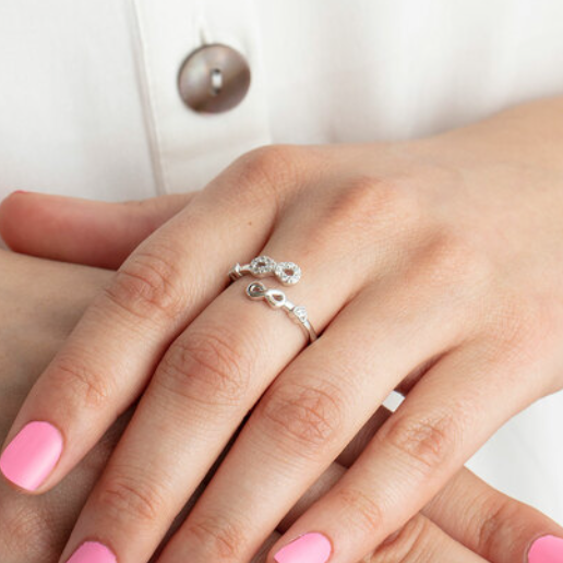 Anello in argento925 contrarie simbolo “infinito” con zirconia incolore.